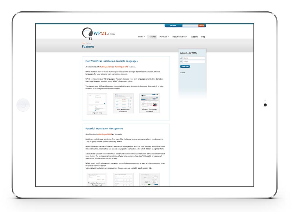 WPML allows running fully multilingual websites with WordPress, making it easy to translate WordPress pages, posts, tags, categories and themes. And since our Themes are optimised for WPML the whole experience gets even better!
